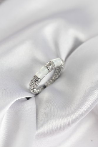 Zirkon Taşlı Kemik Model Gümüş Renk Kadın Yüzük