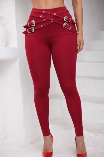 Kadın yüksek bel yanlardan püsküllü deri pantolon
